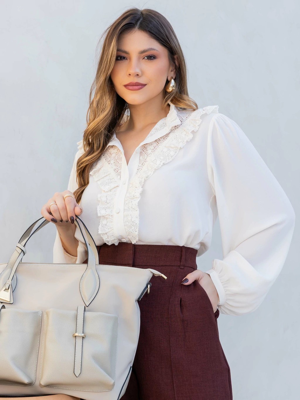 Descubra a Elegância da CAMISA CHIFFON E RENDA COM BABADINHOS