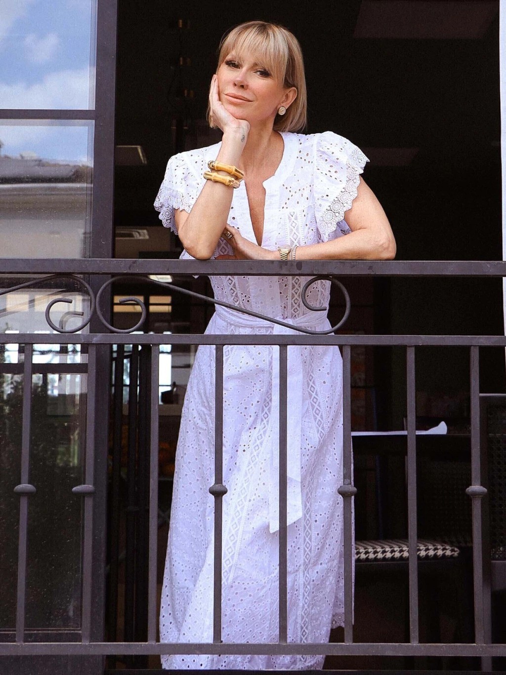 Sua modelagem evasê valoriza a silhueta, enquanto o decote redondo com abertura em V e as mangas curtas com babados trazem um charme romântico ao visual. Os recortes estratégicos contam com aplicação de entremeios, agregando sofisticação e detalhes únicos.